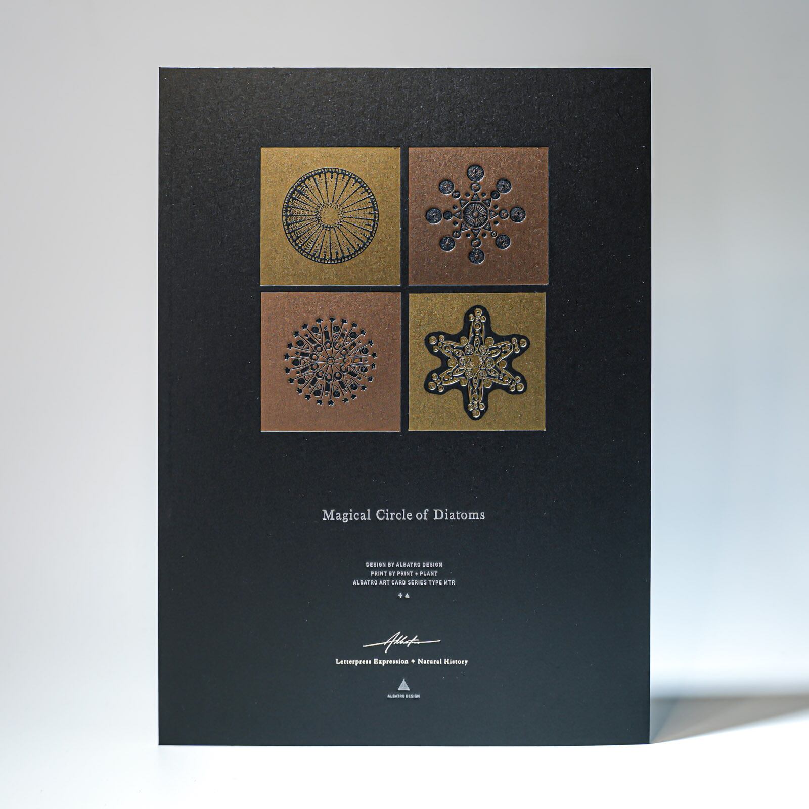 特殊な活版印刷の技法で珪藻類の模様を表現しました。
