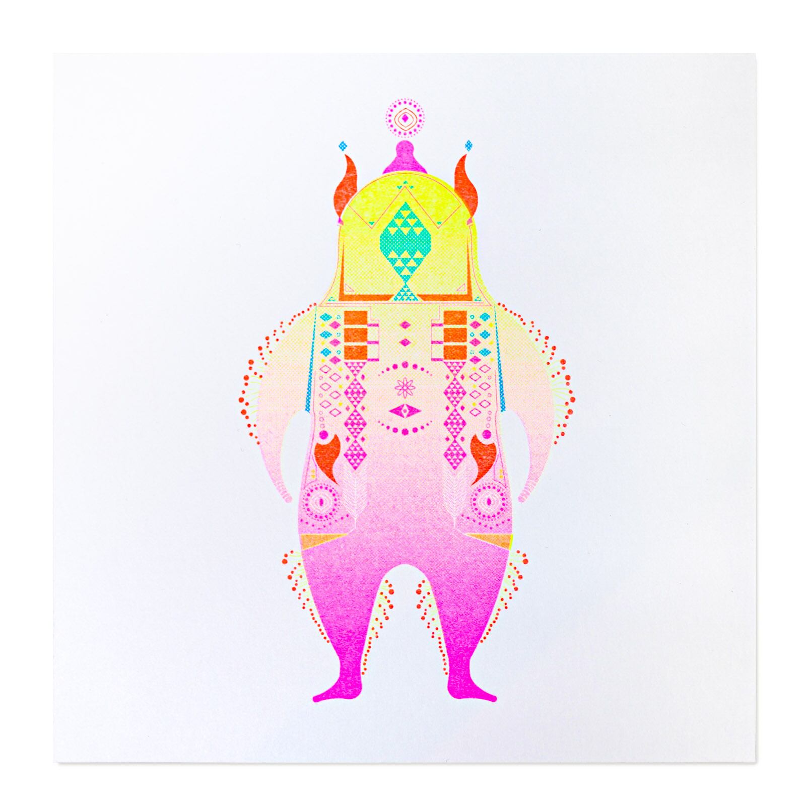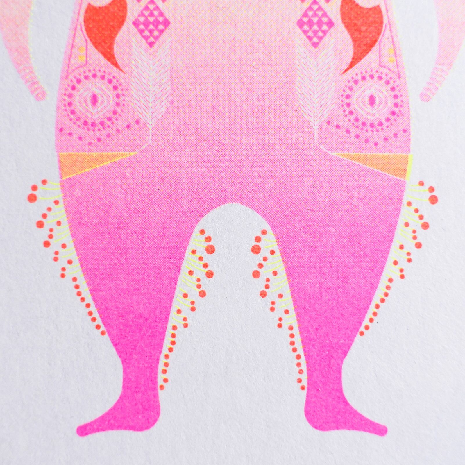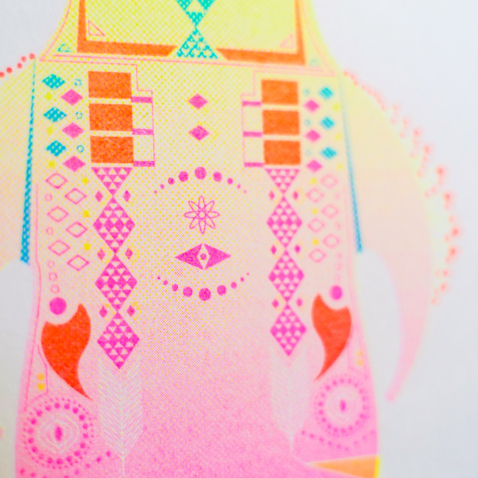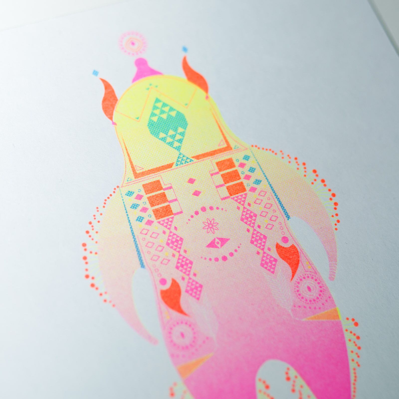 リソグラフの蛍光色で印刷した護符です。